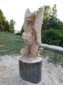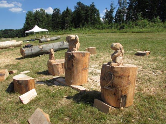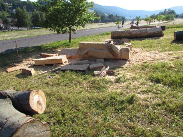 A bylo se na co dívat. Sledovali jsme jak z dřevěných klád z velké části za pomoci motorových pil, vznikají překrásná díla.